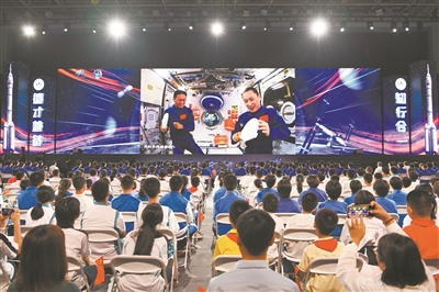 9月21日下午,“天宫课堂”第四课开讲。在距离地球400公里外的中国空间站里,神舟十六号航天员景海鹏、朱杨柱、桂海潮以天地互动的方式,为全国青少年带来了一场别开生面的太空科普授课。