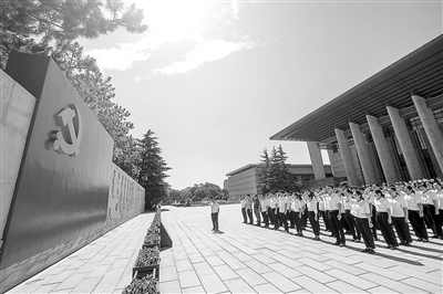 6月30日,浙江省嘉兴市南湖区新发展党员在南湖革命纪念馆重温入党誓词。 新华社记者 徐昱 摄