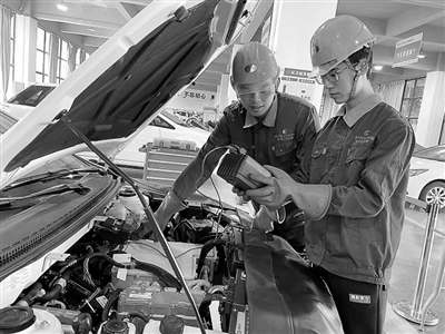 ④南宁职业技术大学新能源汽车技术专业学生进行新能源汽车维修实训。邓汝奎 摄 除署名外均由学校供图
