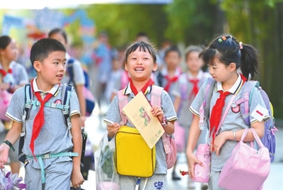 重庆市沙坪坝区凤鸣山小学学生步入校园。 资料图片