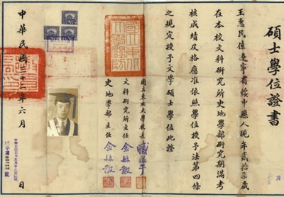 东北大学在四川三台流亡办学时颁发的硕士学位证书。 学校供图