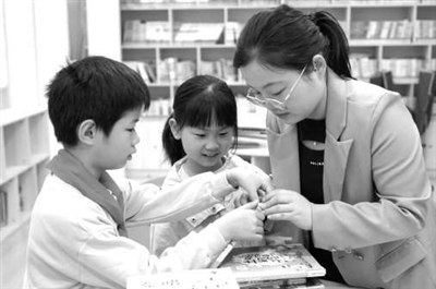 湖南省长沙市实验小学的学生在对图书进行编号。学校供图